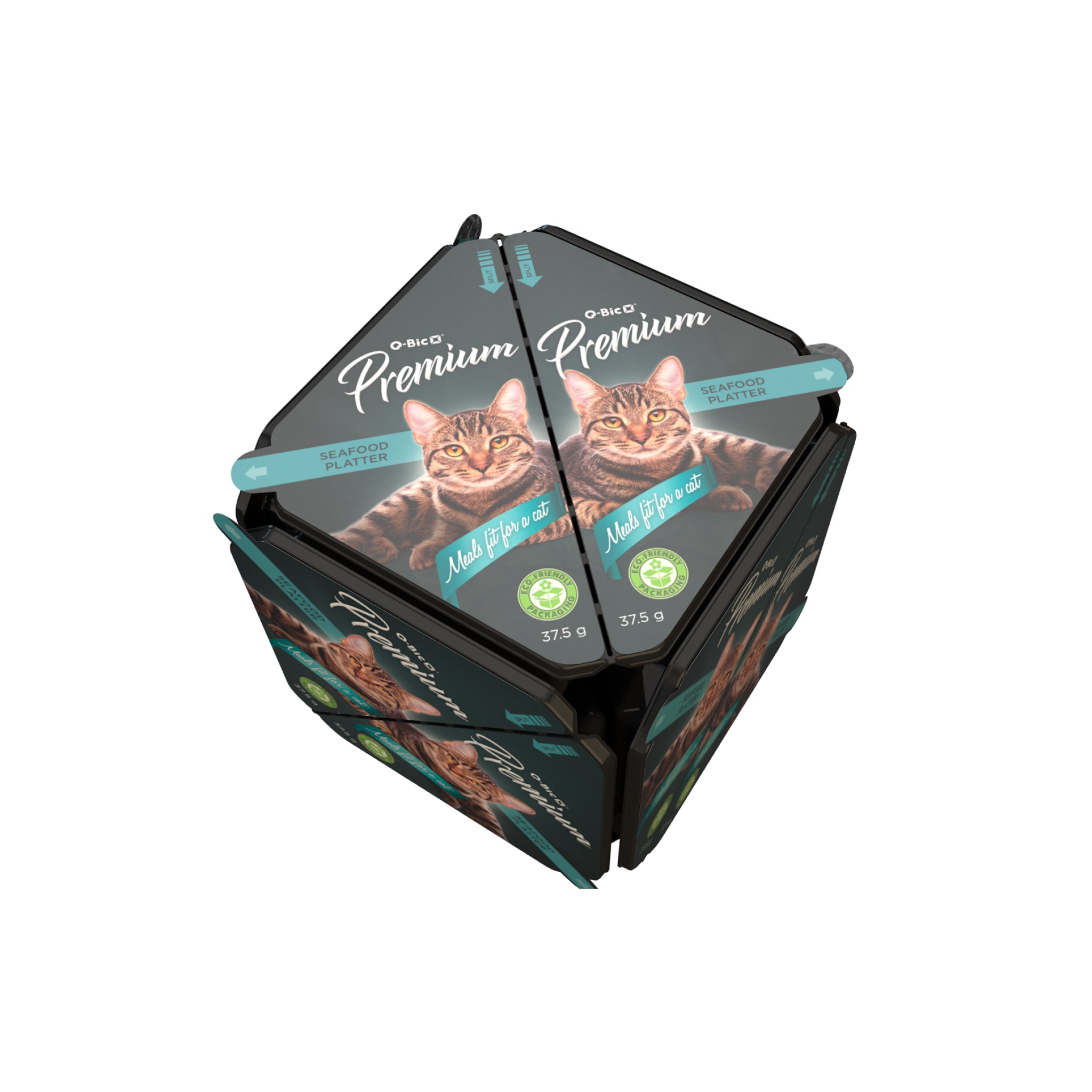 Pet food is perfect for Q-Bic and will take up half the space throughout the whole value chain. Also, pet food often is an e-commerce product which makes it a perfect match with our Q-Bic design due to space efficiency and the strength of the cube.