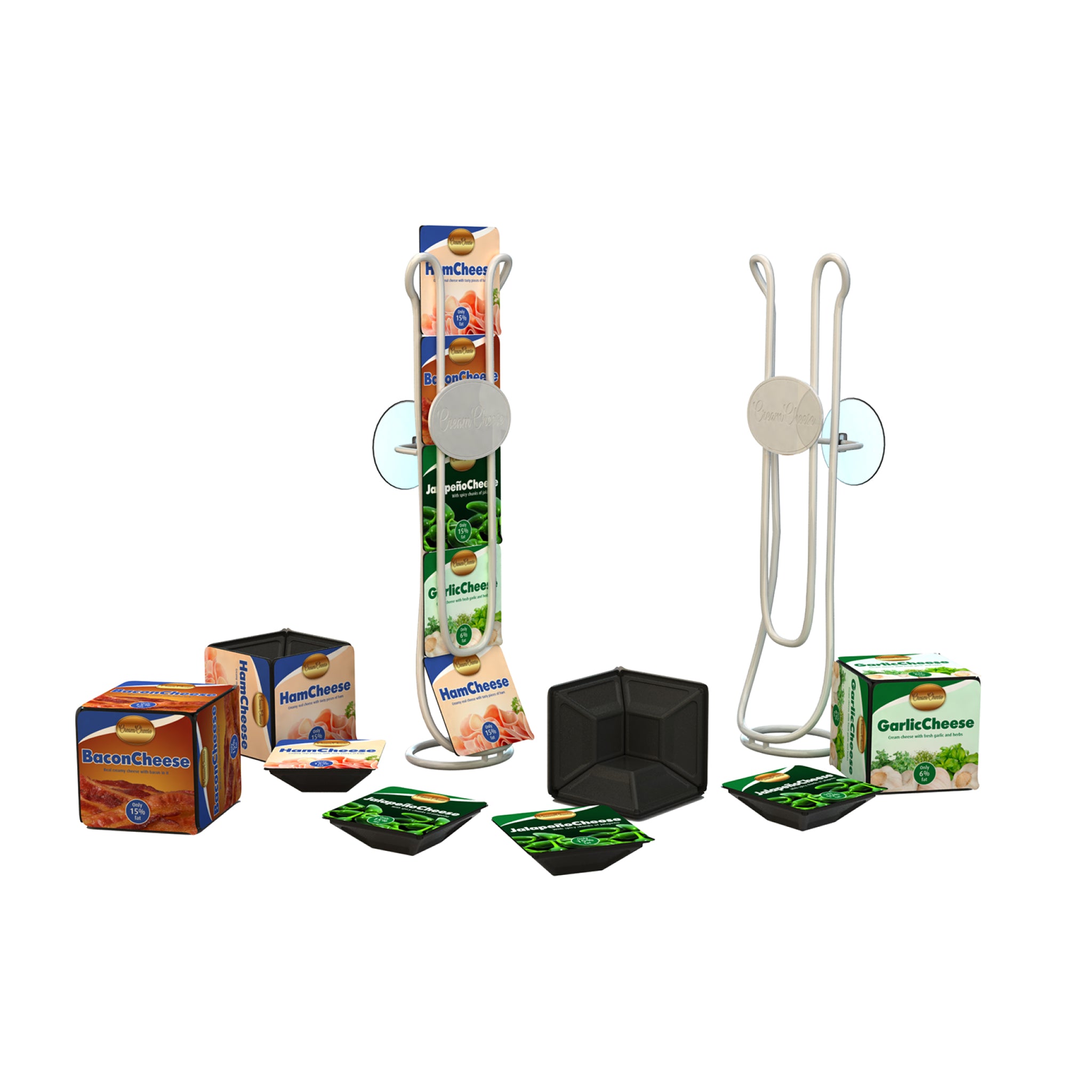 The Q-Bic design works well both from the multipack/distribution box, or consumer packs can be placed on shelves. Q-Bic can be placed flat - at 90 degrees with a back support, or at a 45 degree angle without support.