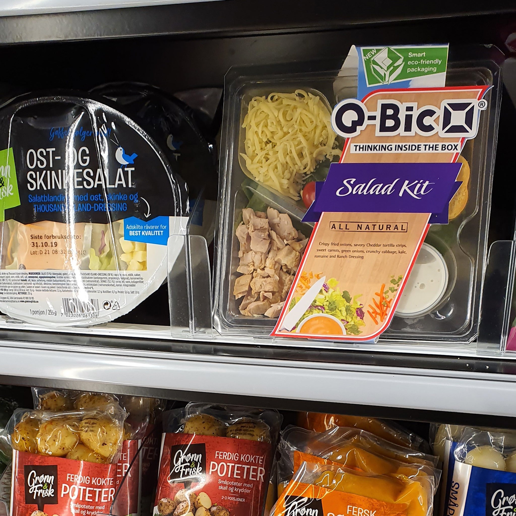 Using Q-Bic trays for salads and fresh produce will ensure 2 - 2.5 x more products on the pallets. In the example shown, Q-Bic gets 2.5x the products on the pallet compared to the competing trays, with exactly the same internal volume in the three-chamber trays.